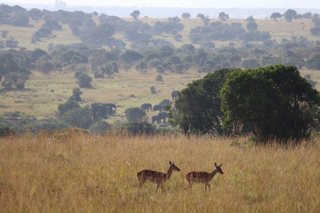 2003-Impalas, elephant, Maasai Mara, Kenya.JPG