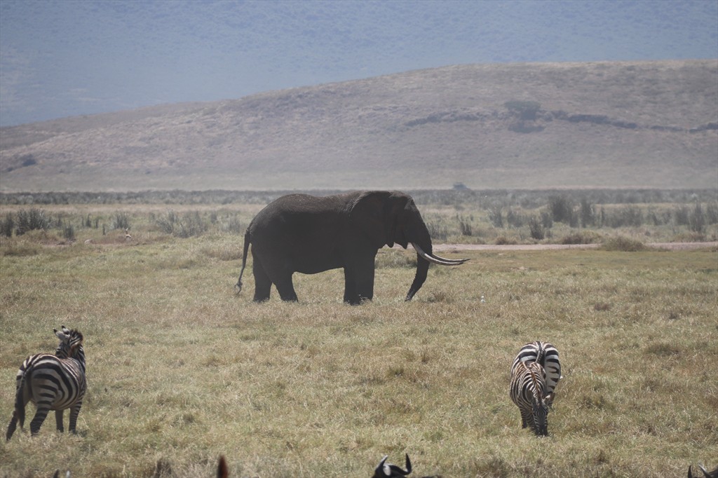 3808-Zebras, elephant, Ngorongoro Crater, Tanzania.JPG